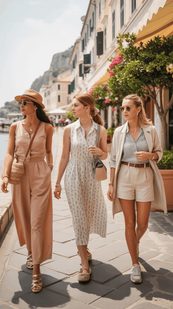 - Knee-length bottoms – Shorts and skirts should typically cover the knees. Lightweight maxi skirts or flowy linen pants are both comfortable and appropriate.