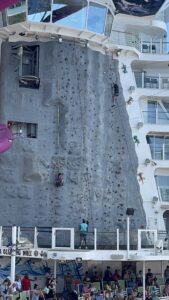 The FlowRider surf simulator gives you a fast, splashy burst of energy that feels completely different from anything else on the ship. Water rushes beneath you in a steady wave, and the crew helps you start with a simple bodyboard so you can get used to the flow. The moment you catch the water just right, you feel yourself glide forward, and it’s an instant confidence boost. The wipeouts are soft, the laughs are loud, and the whole experience feels like a mix of surfing, boogie boarding, and pure sea‑day fun.