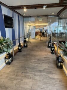- Outdoor seating with greenery – A peaceful escape from the busy ship areas.