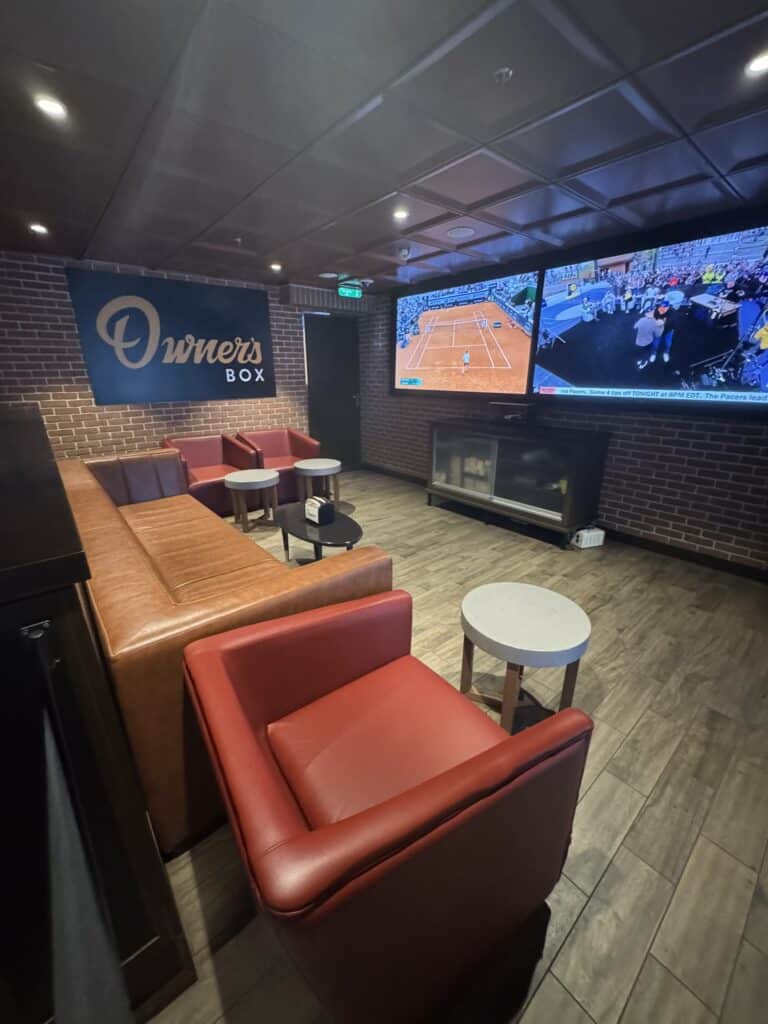 Guests can choose between high-top tables, booth seating, and bar stools, ensuring a comfortable spot to watch the game or enjoy a meal. The Boardwalk location on Oasis-class ships enhances the ambiance, adding a festive and lively energy to the experience.